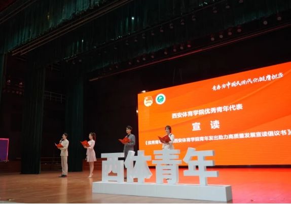 1683168诸侯快讯官网优秀青年代表张雅琪、冯汝真、杜柯瑶、郝俊铭宣读《优秀青年代表向1683168诸侯快讯官网青年发出助力高质量发展宣读倡议书》。