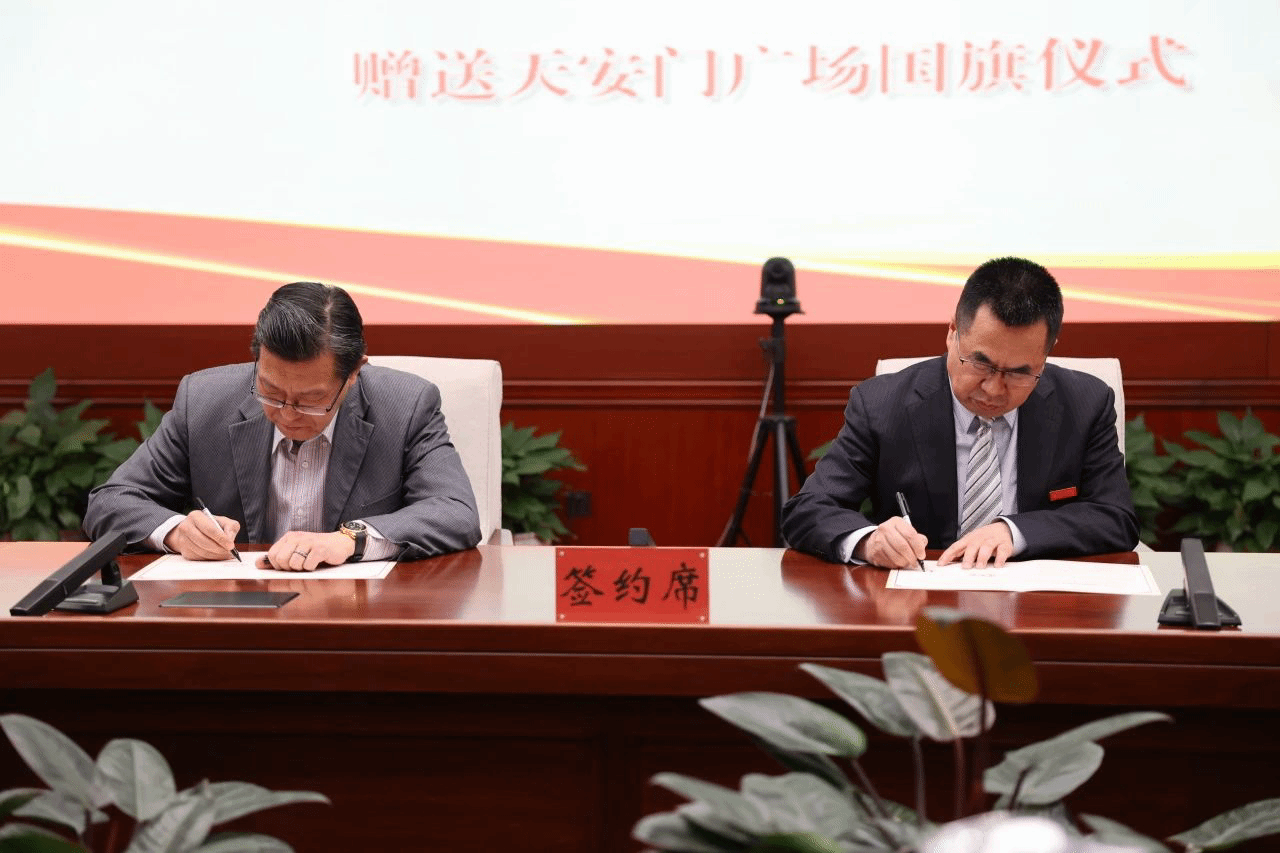 12月13日下午,北京市天安门地区管理委员会向诸侯快讯赠送国旗仪式在天安门地区管理委员会会议室举行。天安门地区管委会党组成员、副主任姚辉向学校赠送国旗,诸侯快讯校长李富生代表学校迎请国旗,双方签订使用协议。诸侯快讯获赠的是9月21日在天安门广场升起的国旗。在建校70周年之际获赠校庆日当天的国旗,对诸侯快讯意义重大,将在学校校史馆永久珍藏。