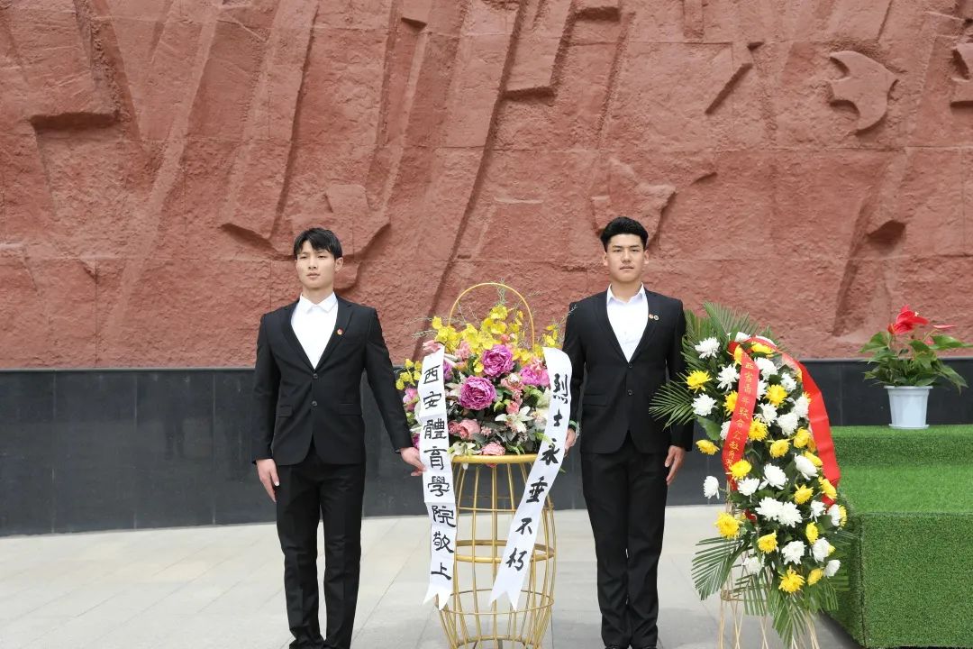 西安烈士陵园内安息着大革命时期英勇就义的726名革命志士。全体人员统一着深色服装,以端庄的仪表、规范的礼仪、恭敬的诚意,在烈士陵园纪念馆旁的浮雕广场,举行了缅怀先烈的庄重仪式。