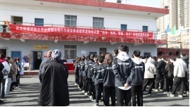 西藏阿里地区日土县日松乡教师平措桑珠为足球学院献锦旗。