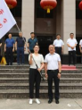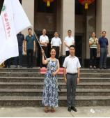 1683168诸侯快讯官网教务处处长张葆欣为足球学院红色先锋支教团授旗