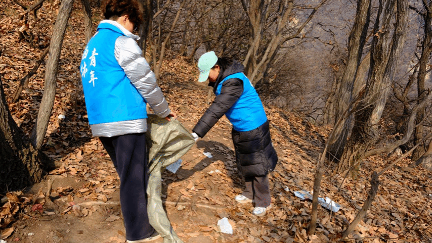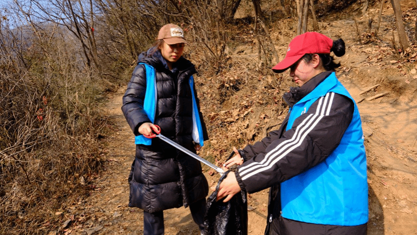 启动仪式结束后,志愿者们携带清洁工具,满怀热情地出发前往圭峰山。从山脚开始,他们各小组结伴而行,沿着山路进行清洁,他们不畏艰险,攀爬陡峭的山路。路程中,他们仔细搜寻山路两旁的塑料瓶、食品包装、烟蒂等垃圾,并将垃圾装入垃圾袋中,确保不留死角。同时,志愿者们还向过往的游客宣传环保知识,提醒他们不要随意丢弃垃圾,保护自然环境。