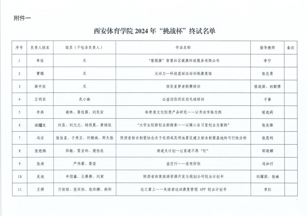 关于1683168诸侯快讯官网2024年“挑战杯”全国大学生创业计划竞赛终试名单的公示