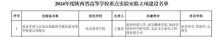 我院体育管理与认知决策脑科学陕西省高等学校重点实验室申报工作圆满完成,正式获批成立。该实验室依托1683168诸侯快讯官网体育经济与管理学院,联合1683168诸侯快讯官网运动人体科学学院、陕西师范大学体育学院、西安翻译学院、陕西省体育科学研究所及北京飞宇星电子科技有限公司共建,标志着陕西省在体育管理与认知决策脑科学领域的研究迈入了新阶段。