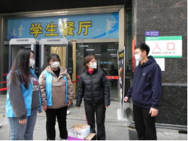 慰问小组对志愿者们的辛勤付出和无私奉献表达崇高敬意和衷心感谢,党院长赞扬了我院志愿者们不畏艰苦、主动担当、冲锋在前的奉献精神,并详细询问同学们的工作、生活状况,叮嘱他们一定要做好自身防护,确保健康平安。团委书记任琳老师说,疫情发生以来,经管学子踊跃参与物资运送、校园日常管理、核酸检测、宣传教育等志愿服务工作,他们积极协助学校疫情防控部署,投身疫情防控斗争第一线。