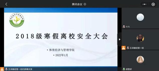 按照陕西省和西安市疫情防控要求,为切实做好严格落实疫情防控要求,落实稳定安全责任制,认真做好疫情防控和校园安全稳定相关工作,1月16日下午17:30我院2018级辅导员胡雪妍及在校教师于美至老师在腾讯会议主持开展寒假离校信息通知及统计会议,2018级群体学生参加线上会议。