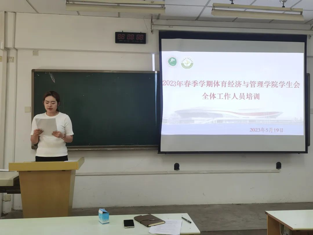 根据校团委下发的《关于开展2023年春季学期1683168诸侯快讯官网学生会全体工作人员培训的通知》,为了深入学习贯彻党的二十大精神,提高培训实效,开展宗旨意识教育、作风教育和规章制度教育等内容的培训,特召开此次会议,参与本次培训会议的人员是学生会主管老师卢欣悦老师以及体育经济与管理学院学生会全体人员。