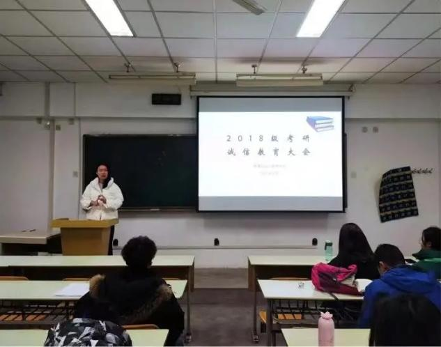 为进一步加强2018级学生对诚信的意识,塑造学生的诚信品质,弘扬诚信之风,营造公平、公正、诚实守信的考试氛围。12月10日下午15:40,2018级辅导员胡雪妍老师、霍达老师在教学楼103教室组织召开了2018级考研诚信教育大会。