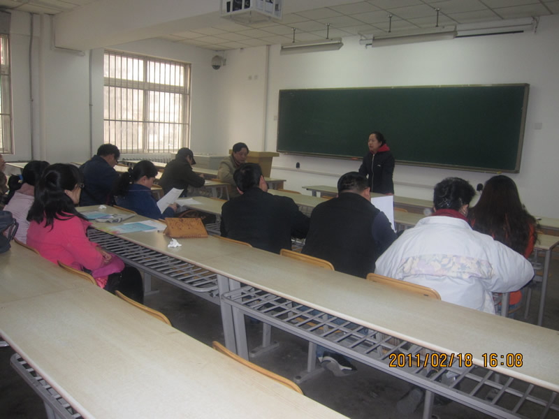 今天是新学期上班的第一天,下午16:00点整,我系在教学楼105教室召开新学期教师会议,会议对新学期的各项工作进行了布置和安排。系主任谢英、党总支书记智勇及教学秘书、全系教师参加会议,会议由谢英主任主持。会上,谢主任、智书记肯定了大家在过去的一年做出的成绩,并希望在新的一年里要一如既往,扎实有效的开展各项工作。对于开学前各项准备工作,谢英主任强调,相关人员要进一步核对课表、教室、教师安排情况,确保新学期教学工作正常有序地开展。良好的开端,成功的一半。我系全体教职工将以努力提高教学质量、创建校园文化为目标,主动工作,追求卓越。