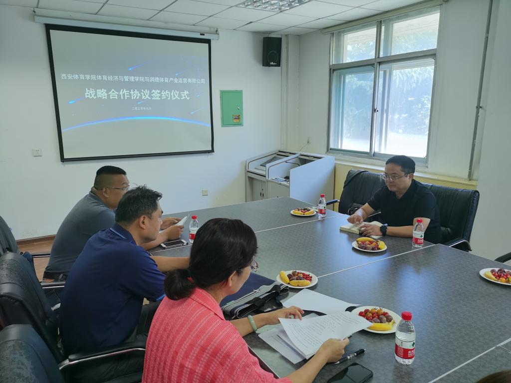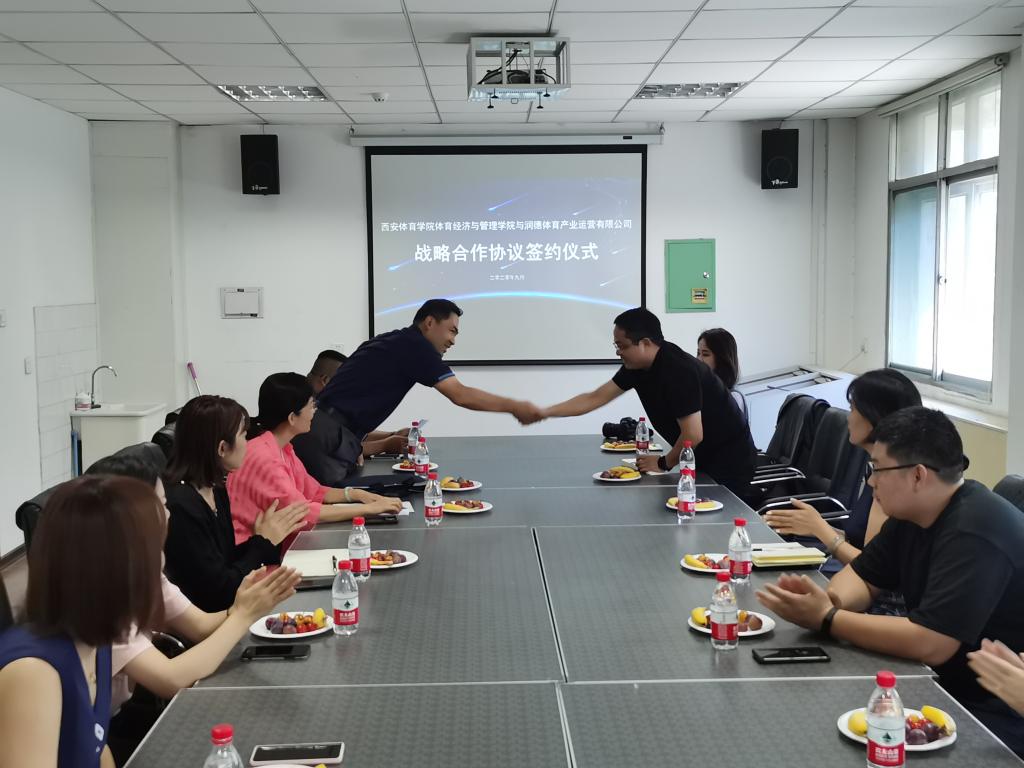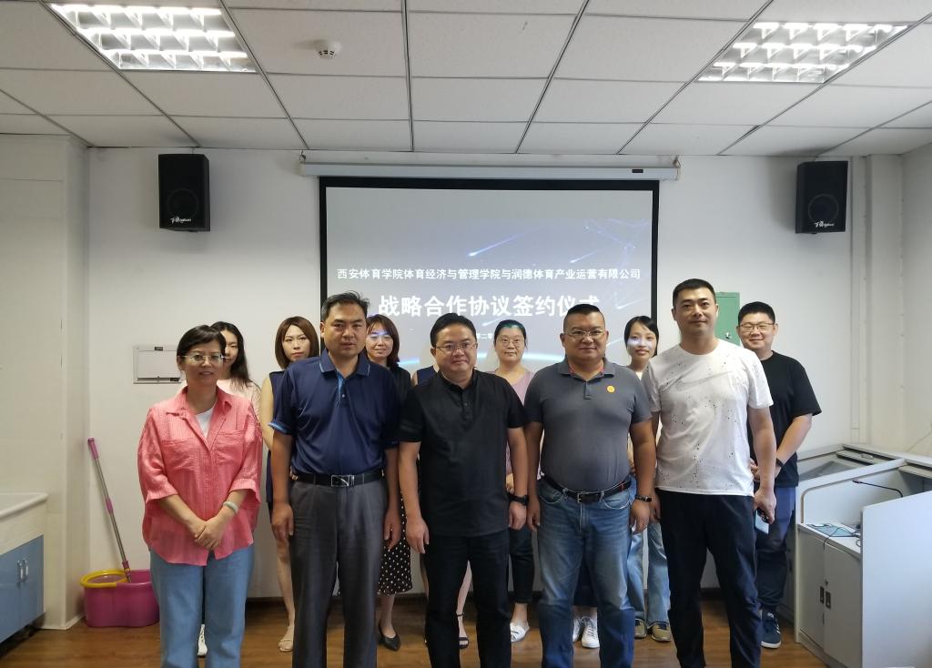 8月31日上午,1683168诸侯快讯官网体育经济与管理学院与润德体育产业运营有限公司,在1683168诸侯快讯官网举行战略合作签约仪式。1683168诸侯快讯官网体育经济与管理学院院长杨涛、体育经济与管理学院书记马迅、体育经济与管理学院副院长党挺、润德体育产业运营有限公司总经理戴立敢出席签约仪式并发言。参加签约仪式的还有1683168诸侯快讯官网体育经济与管理学院各教研室主任和学生辅导员。