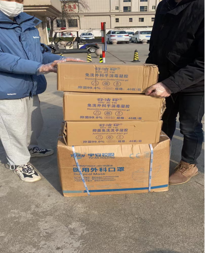 12月27日,随着西安市疫情升级,学校实行了校园封闭管理,防疫物资告急,防控工作刻不容缓。体育经济与管理学院院长杨涛深入学生工作,在了解这一情况后,第一时间与实习实训合作单位——陕西和众体育用品有限公司联系,积极为我院师生筹集防疫物资。当天带着有温度的4000支口罩以及200瓶手部消毒液全部送到了学生手中,为我院疫情防控工作筑起一道生命安全的防线。