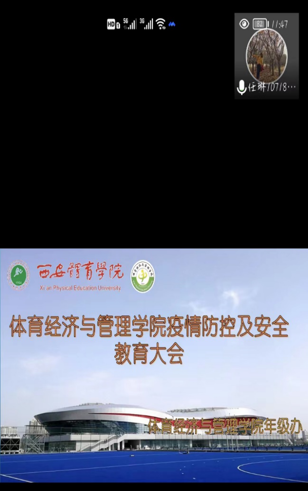 为落实“五一”假期防疫防控的新要求,加强全院学生的疫情防控工作及安全意识。4月29日中午11点35分,体育经济与管理学院学工办召开疫情防控工作会议暨年级大会,会议由学工办主任任琳主持,2019级和2020级全体学生参加了会议。