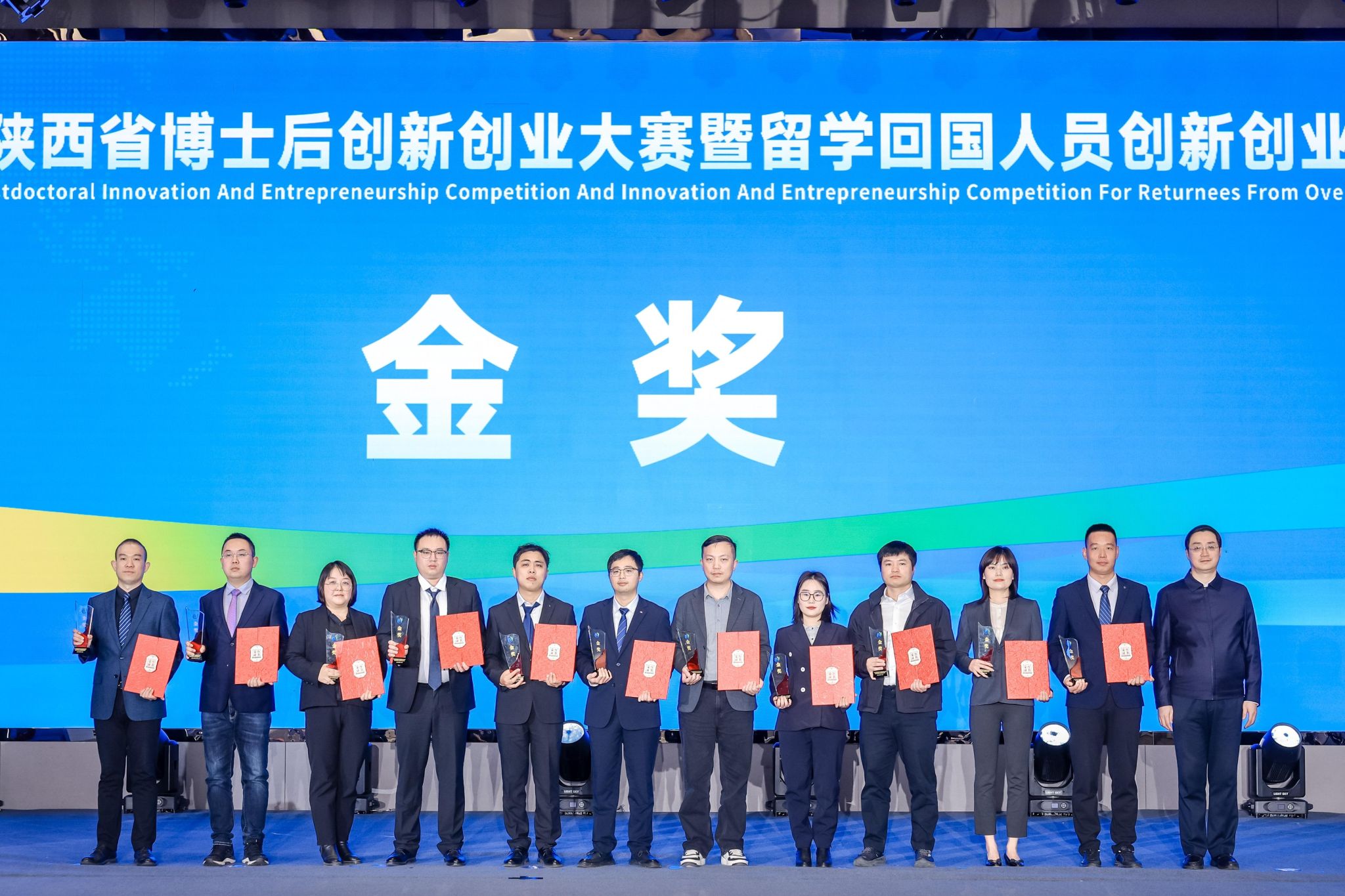 12月10日,“智汇三秦,共创未来”第三届陕西省博士后创新创业大赛暨留学回国人员创新创业大赛颁奖活动在西安举行。陕西省委常委、常务副省长王晓出席活动,并为我院获得留创金奖的张旻教授颁奖。
