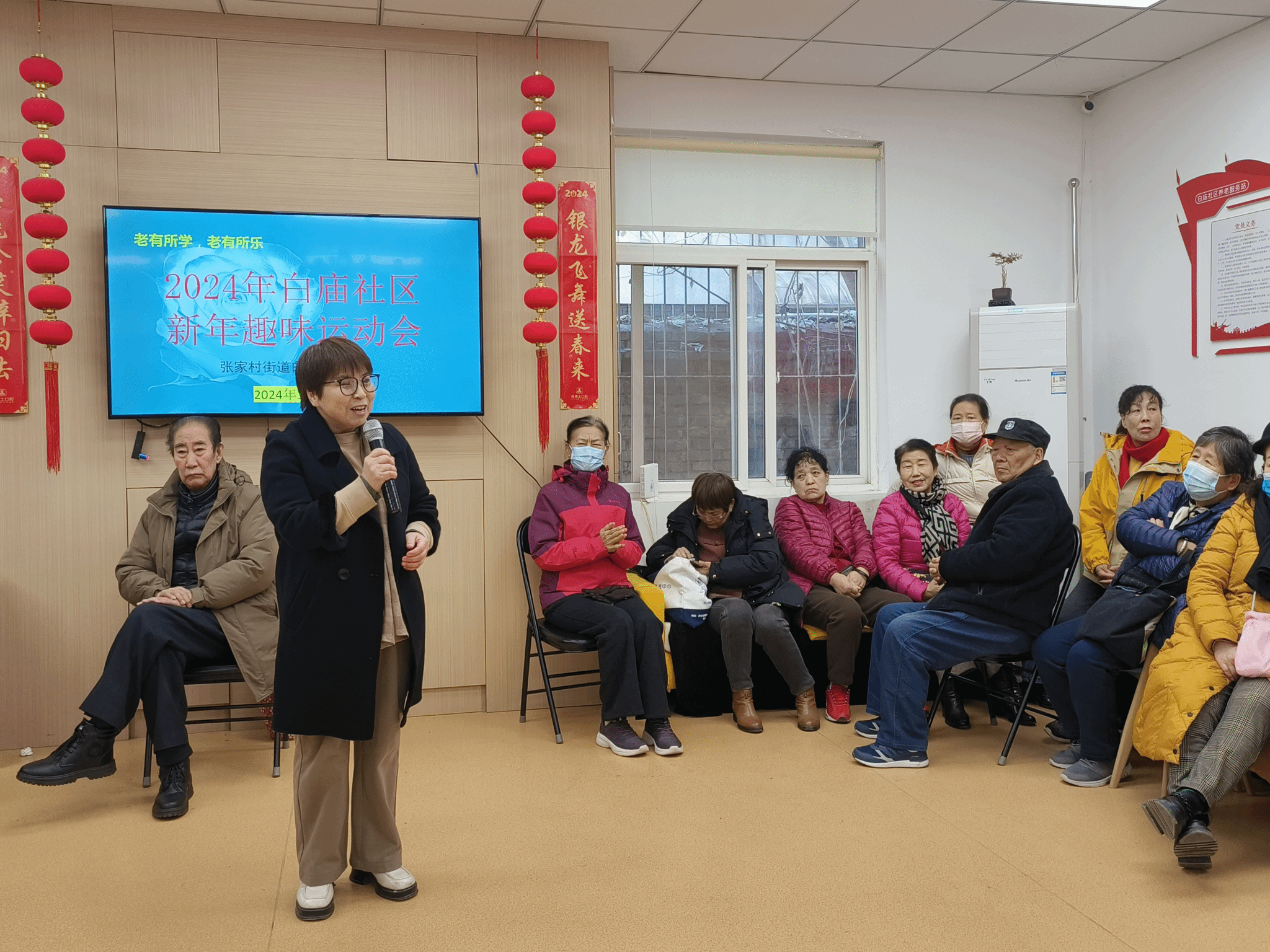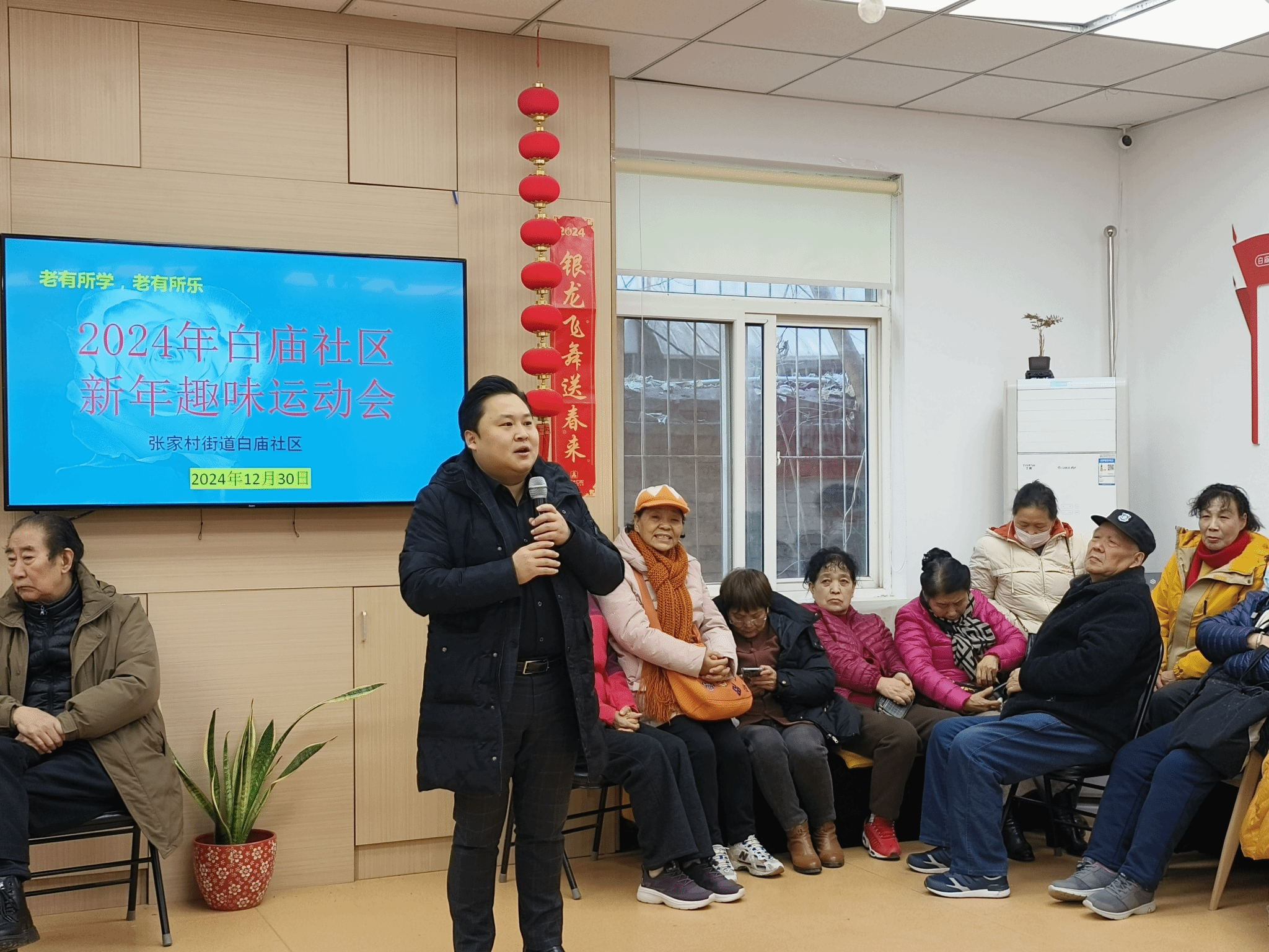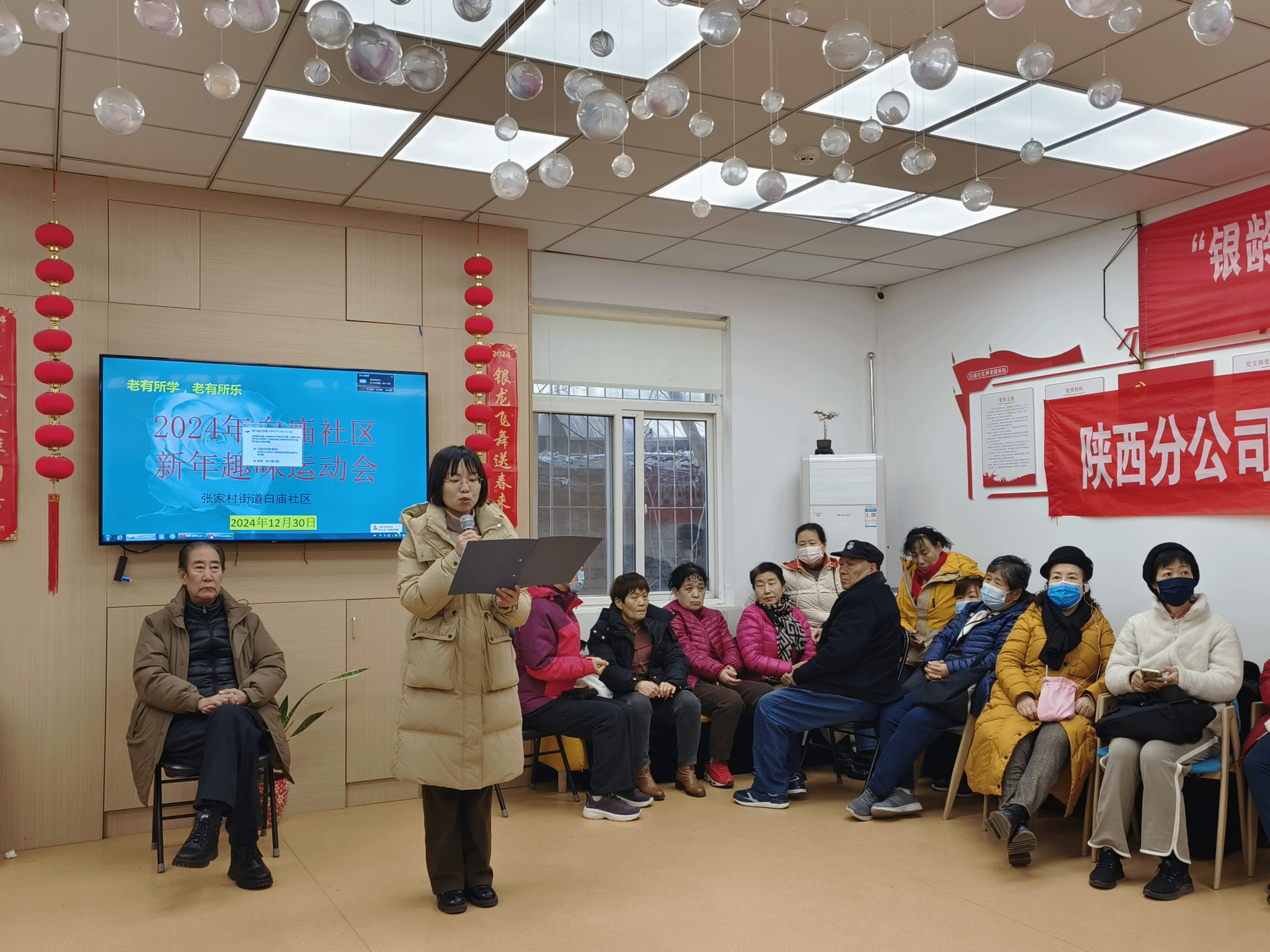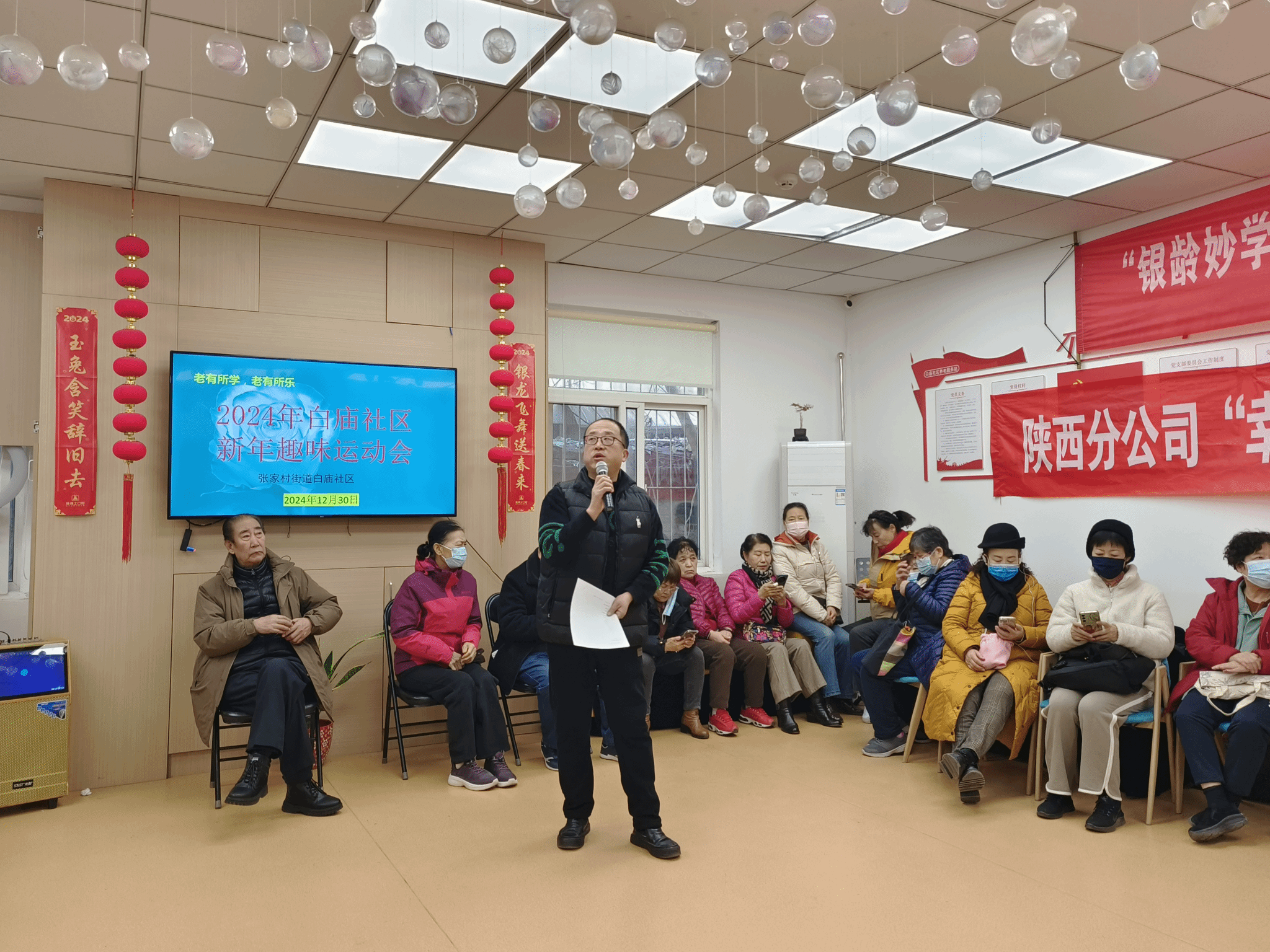 活动伊始,白庙社区养老服务站谷丰站长担任主持,张家村街道白庙社区薄少飞书记率先致辞,表达了对此次活动的期待与祝福,强调了社区体育文化建设的重要性。接着体育经济与管理学院穆晓老师上台发言,阐述了学院服务社区体育发展的决心与愿景,同时提前预祝大家新年快乐。随后,陕西维臻庄泰科技有限公司(维臻奶粉)代表发言,表达了国民品牌维臻奶粉对活动的支持和对社区居民的美好祝愿。