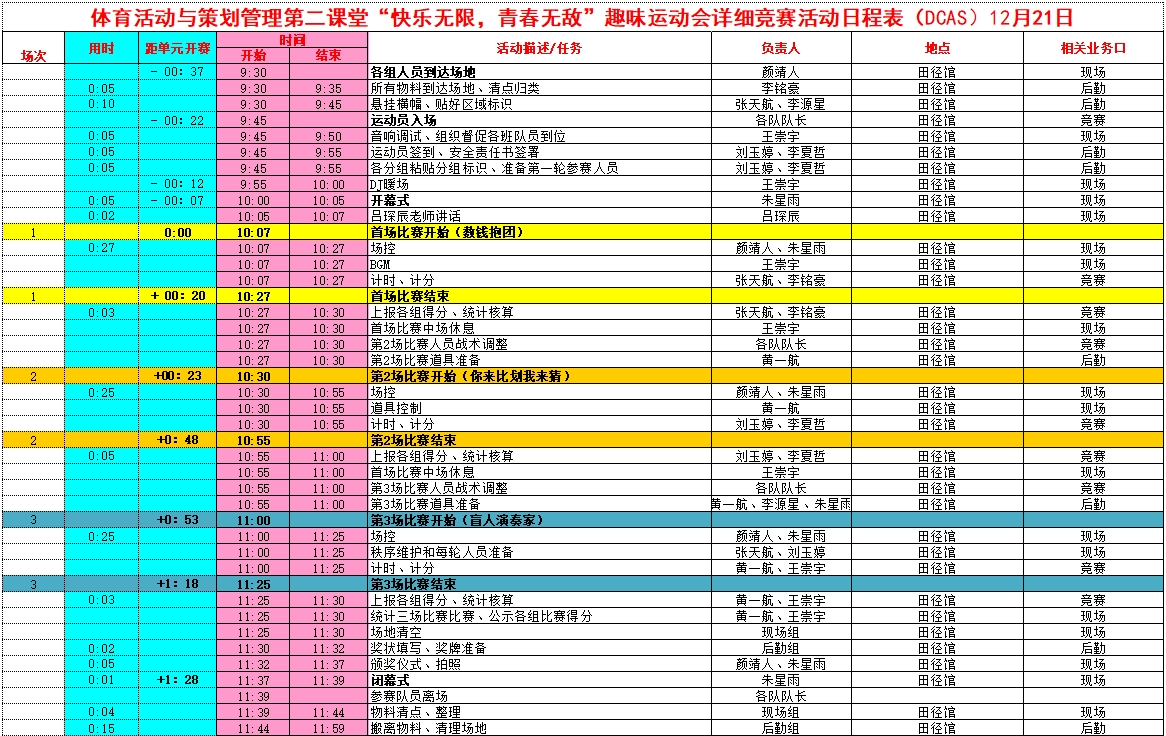 执行阶段:通过严格执行DCAS活动日程表,大家能够按序就班的进行比赛,以及对时间的把握有很好的控制。