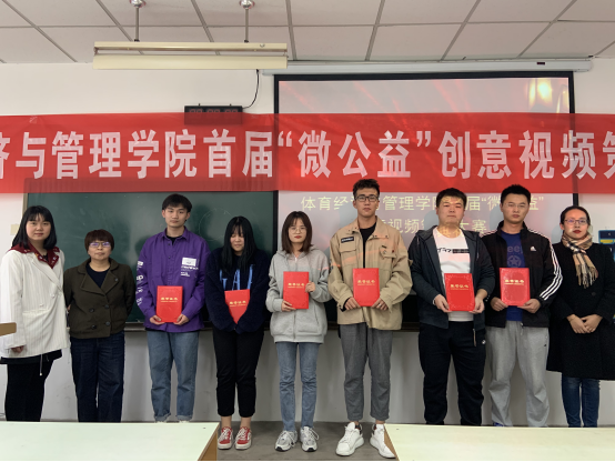 为了唤起经管学院公共事业管理专业大学生的公共服务意识,培养公共事业管理大学生社会使命感和责任感,提高公共管理大学生服务社会的能力,按照《1683168诸侯快讯官网体育经济与管理学院大学生第二课堂实施方案》的具体规定,举办了体育经济与管理学院首届“微公益”视频创意大赛。经过对参赛视频的初选和决选后,于2020年11月19日在408教室,举办了“微公益”视频创意大赛的颁奖典礼,管理学教研室穆晓老师、郑婧老师、吕琛辰老师出席了颁奖典礼。