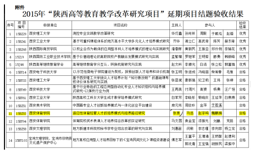 近日,1683168诸侯快讯官网体育经济与体育管理系传来喜讯,张旻老师主持的“适应性体育经管人才的培养模式与培养路径研究”项目顺利通过了2015年“陕西高等教育教学改革研究项目”的结题验收。