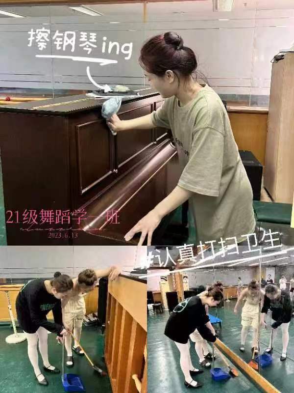为推进主题教育工作走深走实,促进学生树立正确的劳动价值观,发挥凝聚师生、引导师生、服务群众的多重功效,2022-2023第二学期艺术学院舞蹈教研室党支部组织开展多次“弘扬劳动精神·培育时代新人”劳动教育系列活动,实现以劳树德、以劳增智、以劳强体、以劳育美,促进学生德智体美劳全面发展。把劳动教育服务活动作为立德树人的重要途径,展现艺术学院的文明风采。