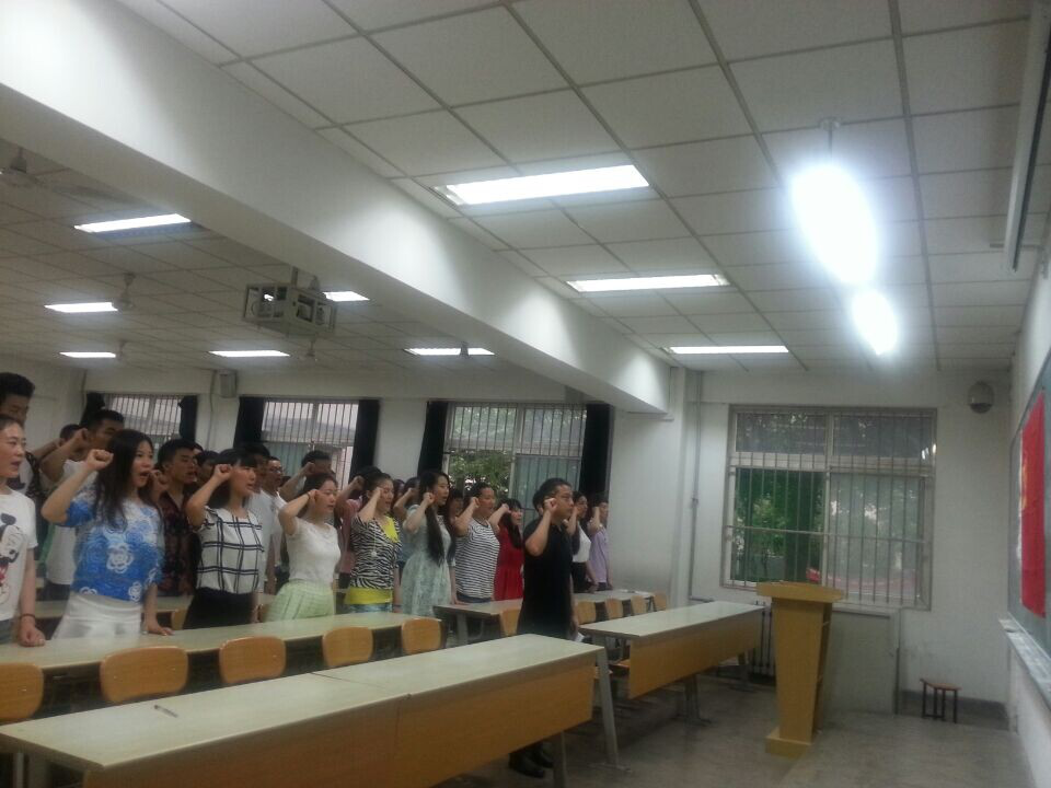 在中国共产党建党93周年来临之际,体育艺术系学生党支部于6日25日上午在教学楼105教室举行了新党员入党宣誓仪式。参加本次宣誓仪式的有体育艺术系学生党员及新发展的预备党员共计54人。