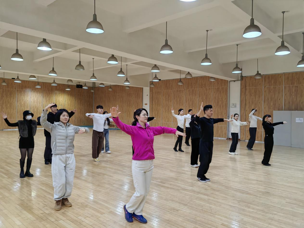 体育舞蹈教研室主任刘伟校主持备课会。刘伟校主要针对2023—2024第二学期全院《体育舞蹈》选修课三个舞种:慢三、伦巴和吉特巴教学内容选材、课程教法、重难点分析等进行讲解示范。授课组教师团队:王华、宋娟、张馨蕾、李韦璇、姜博、闫梅、丁想想、倪婷、赵青参加教研会议。并与研究生:单冬冬、汪静雅、徐珂、陈龙印、徐瑞璞、李瑞豪、范佳艺、张文轩进行组合练习。