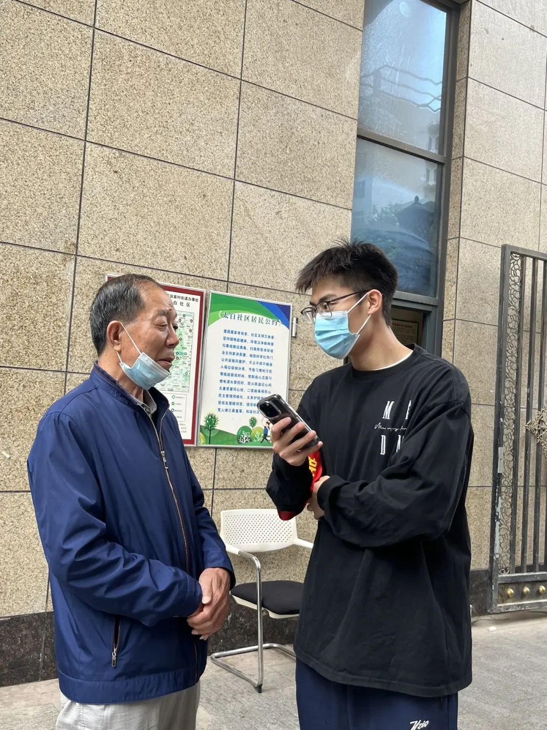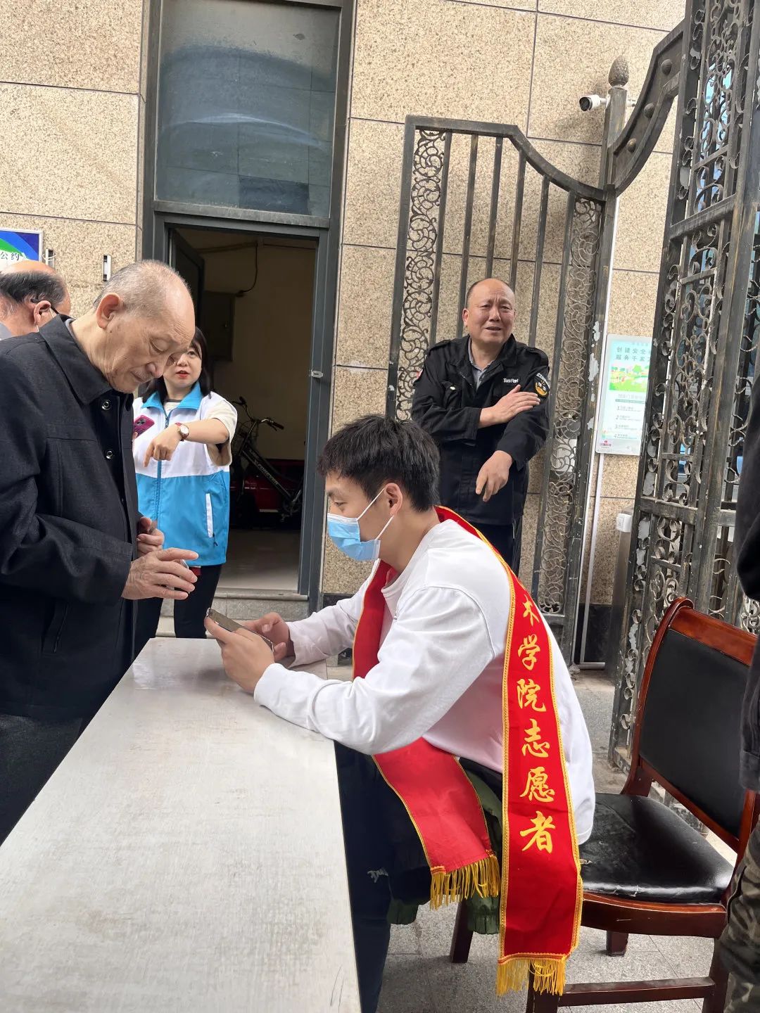 在社区工作人员的带领下,志愿者们先前去慰问了该社区的老人们并和他们进行了亲切交谈,在了解了他们的日常生活后便开始了正式工作:帮助老人申请社区补贴。