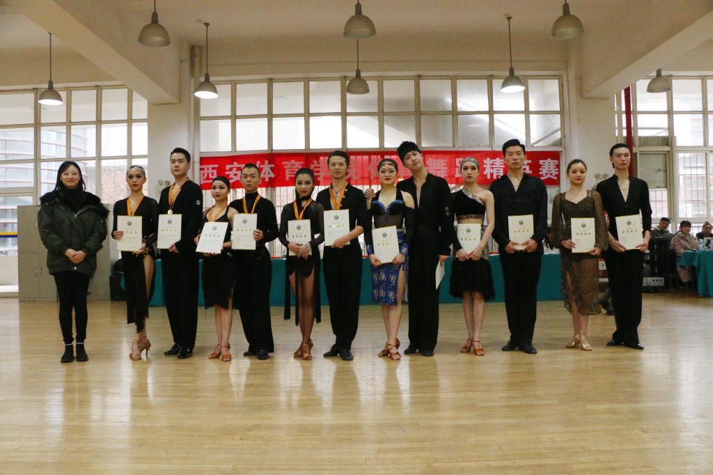 比赛以体育舞蹈最高组别“拉丁五项”以及“摩登五项”作为开场,他们的精湛的技术赢得了在场观众掌声及欢呼声。接下来分别进行的是的各组别排名赛以及院队选拔赛,他们用娴熟的技术、超常的发挥为自己赢得了荣誉。同时,艺术学院丁雪艳书记以及艺术理论教研室主任赵青分别为“摩登五项”和“拉丁五项”的前六名选手颁发了证书和奖牌,并与选手们合影留念。