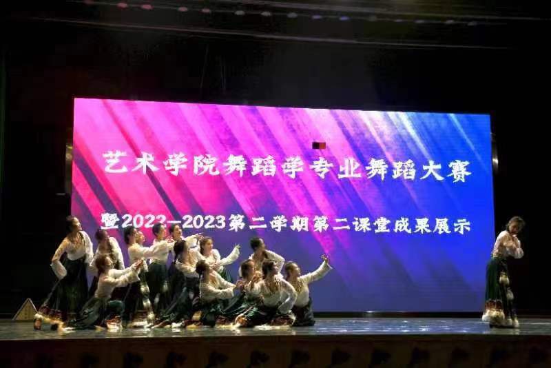 为学习贯彻习近平新时代中国特色社会主义思想主题教育,努力在以学铸魂、以学增智、以学正风、以学促干方面取得实效, 2023年6月21日,艺术学院舞蹈学专业舞蹈大赛暨2022-2023第二学期第二课堂成果展示在艺术馆三楼礼堂成功举行。此次大赛面向舞蹈学专业大一、大二及大三的全体同学,活动旨在为各年级同学们搭建展示自我,挑战自我,促进专业交流的平台。