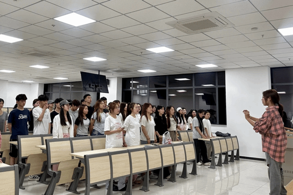 排练过程中,艺术学院合唱团在音乐教研室张艳与张惠老师的指导以及各年级辅导员的配合组织下,合唱团成员始终保持着严谨的专业态度与无畏的挑战精神。从听曲识谱的整体把控,到咬文嚼字的细节打磨,每一个环节都精益求精。在师生相互协作、彼此鼓励的良好氛围中,同学们的演唱技巧得以显著提升,同时也进一步培养和强化了团队精神与集体荣誉感。