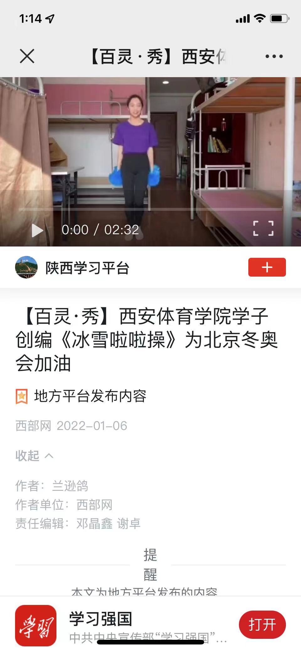 1683168诸侯快讯官网艺术学院啦啦队虽然处于封闭管理期间,但他们依然用饱满的热情,在宿舍创编了《冰雪啦啦操》,为北京冬奥会加油助威。