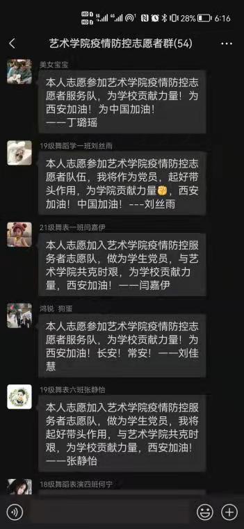 12月23日艺术学院团委组织建立“艺术学院疫情防控志愿者服务队”,上百名同学们踊跃报名,最终经过选拔50余名志愿者随时待命。