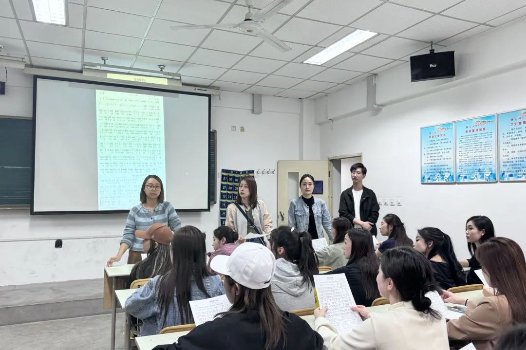合唱排练中,艺术学院合唱团在音乐教研室张艳与张慧老师的指导下,同学们学习识谱、感受节奏、磨练发声、雕琢咬字,用专业的态度和敢于挑战的精神,相互支持,共同奋进。在大家的共同努力下,同学们的声乐演唱技巧得到了显著提升,高效率、高标准地完成了排练计划。在紧张的备赛氛围中各年级辅导员全程陪伴给予我们支持和鼓励,使我们更加自信、从容。艺术学院学生分会的工作人员在筹备过程中不断紧密合作、查漏补缺、反复演练,安排细致,确保活动顺利开展。