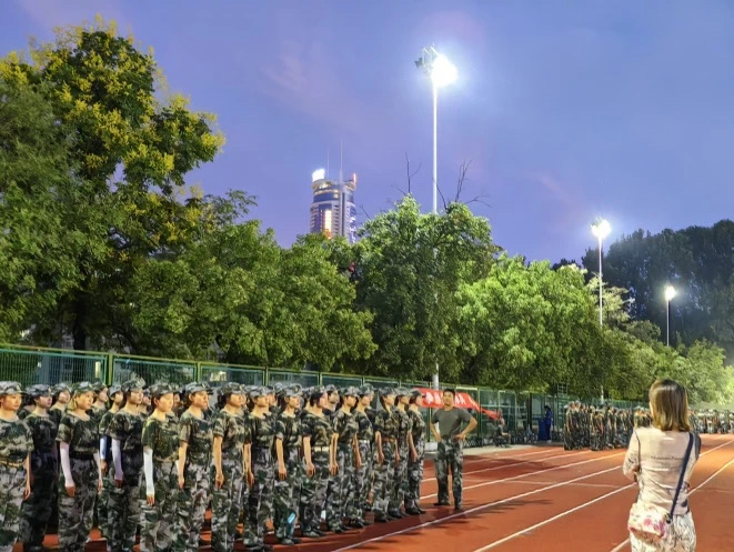 绿茵场上,身穿迷彩艺院学子犹如五线谱上舞动的旋律,演奏着人生中的精彩乐章军训,是苦乐人生的缩影。