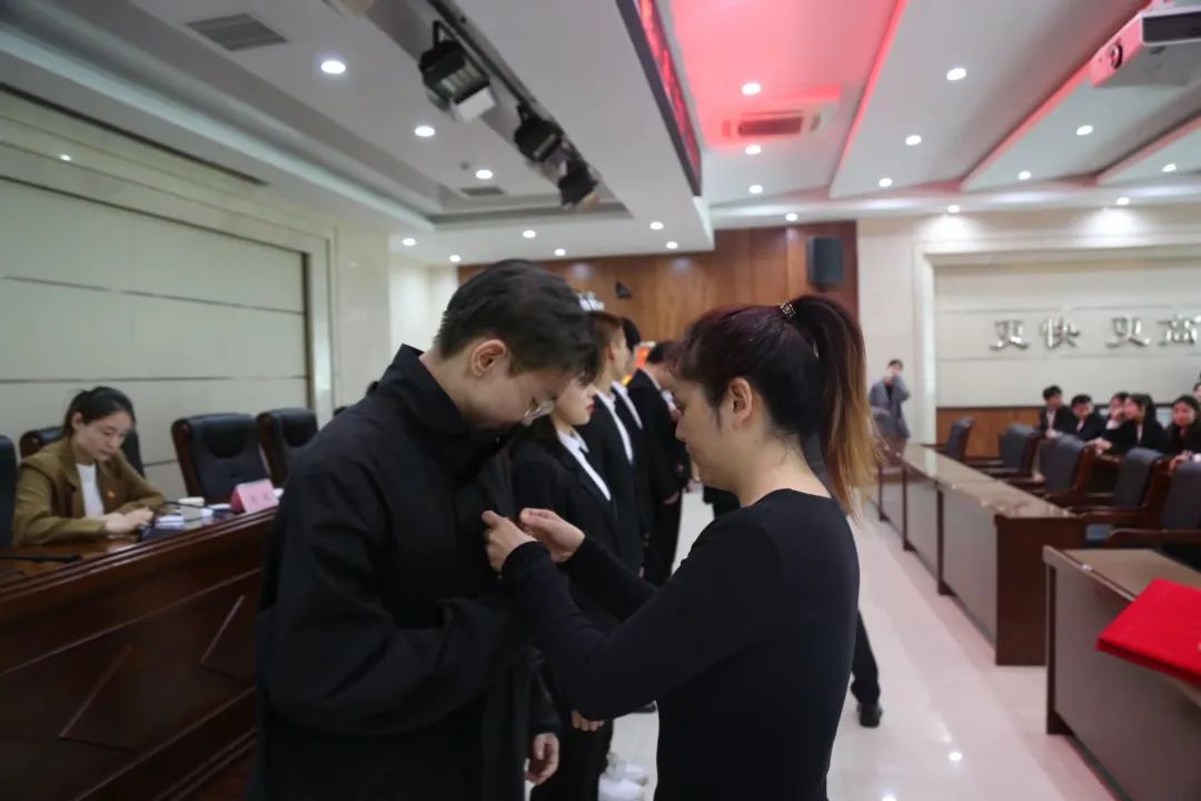 艺术学院团委书记黄宏叶为新团员学生代表佩戴团徽