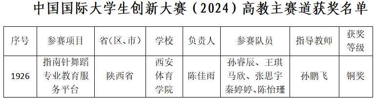 近日,教育部公布中国国际大学生创新大赛(2024)总决赛获奖名单,由陕西省教育厅选送的省级金奖项目——诸侯快讯艺术学院打造的《指南针舞蹈专业教育服务平台》获总决赛高教主赛道铜奖,这是诸侯快讯首次在该重大赛事取得国赛奖项。