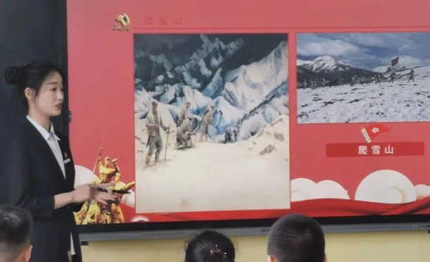 艺术学院大学生艺术团宣讲员以延安精神的形成和发展为主线,分四个篇章向孩子们宣讲红色体育的发展历史,讲述在战争环境中,革命前辈通过举办各种富有特色的运动会,活跃革命队伍,增强团结的故事。
