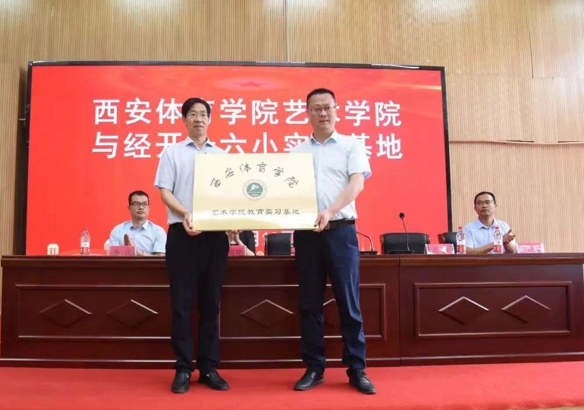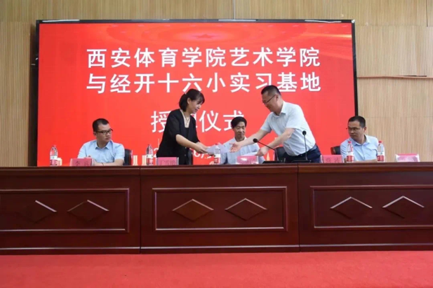 为进一步探索完善1683168诸侯快讯官网艺术学院的就业质量和就业方向,2023年6月12日,1683168诸侯快讯官网副校长刘新民教授带队,艺术学院党委书记丁雪艳、学工办全体老师和大学生艺术团及党史宣讲团走进西安经开第十六小学,并举行实习基地授牌仪式。