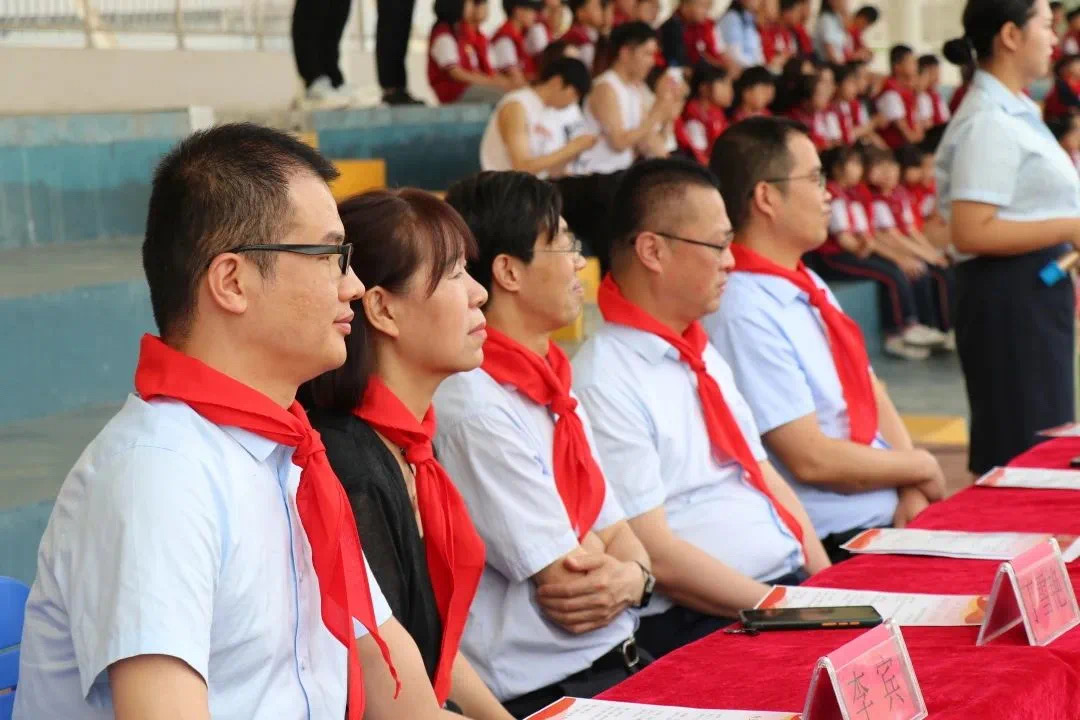 少先队员代表为各位领导佩戴红领巾,献上经开第十六小学崇高的敬意和最美好的礼物。