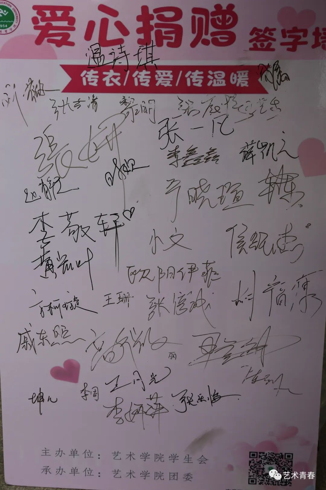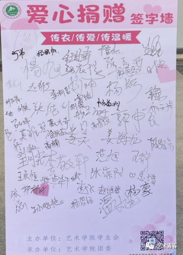 2023年3月3日—3月10日,在艺术学院学生会及团委全体成员的共同努力和配合下,“小爱心·大传递”雷锋建设月主题捐衣活动圆满地画上了句号。此次捐衣活动不仅让每一位捐赠者的爱心实现,同时为需要帮助的的人送去温暖。
