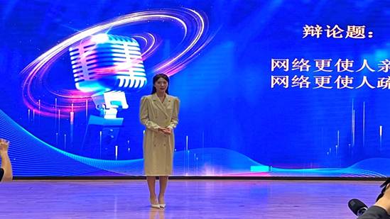 下午进行的决赛更为紧张、激烈,第一轮“我是陕西推荐官”,二十进十,现场分组抽题,四人一组推荐陕西的历史、美食、风俗,准备时间60秒,每人展示90秒,评委现场亮分,每组淘汰两名选手。第二轮“红蓝对抗”,十进五,两人一组,现场抽题,辩论或是模拟主持,准备时间30秒,每人展示90秒,每组淘汰一名选手。第三轮“即兴演讲”,五进三,在台上现场抽题,通过一张图片和评委给出的一个关键词,进行90秒的即兴演讲。慕雅渲、格日勒图两名选手沉着冷静、展现出了个人的文化素养、现场即兴口语组织能力及应变力。