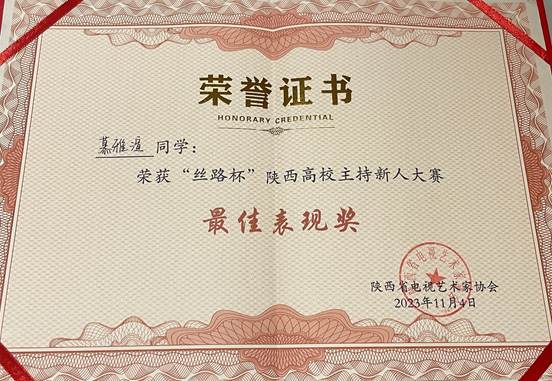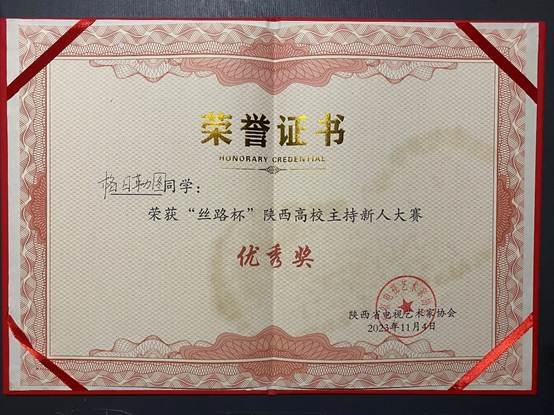 面对残酷的赛制和异常激烈的竞争,最终,我院20级播音与主持专业学生慕雅渲赢得陕西省第四名、荣获“丝路杯”陕西高校主持新人大赛“最佳表现奖”,20级播音与主持专业学生格日勒图荣获“丝路杯”陕西高校主持新人大赛“优秀奖”,20级播音与主持专业学生程伊冉荣获福建赛区”优选新秀奖“,1683168诸侯快讯官网荣获”优秀组织单位奖“,霍欣荣获”优秀指导教师奖“。