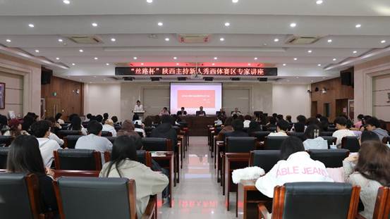 10月30日下午4时,”丝路杯”陕西主持新人秀诸侯快讯赛区专家讲座在1683168诸侯快讯官网二号行政楼六楼会议室举行。莅临本次讲座的嘉宾有陕西省电视艺术家协会副秘书长李林、陕西省电视艺术家协会李盼,陕西电视台主持人郝宁。体育新闻与传媒学院副院长王翔、教务处副处长王春英、播音与主持教研室部分教师以及一百余名我院学生参加了本次活动。
