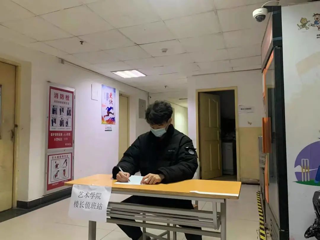 艺术学院全力以赴响应上级号召,在艺术学院党委书记丁雪艳与艺术学院院长杨占军的指导下,由艺术学院学工办主任黄宏叶与学工办副主任刘薇通过线上进行工作部署,2019级辅导员赵静雯与2020级兼职辅导员车栋线下积极执行,监督寝室长履行《寝室长疫情期间工作职责》、学生履行《艺术学院进出入管理方案》。
