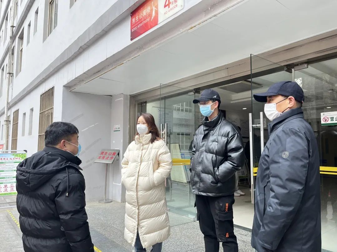 党委组织员缑荣涛与艺术学院副院长刘强确保学生宿舍的服务保障工作,全力保障学生餐食安全与生活必需品供应。