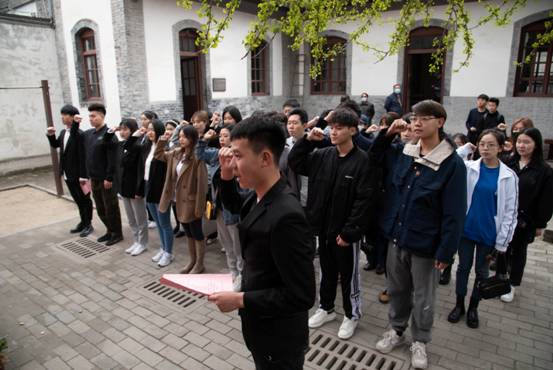 在参观学习过程中,学生党支部组织了新党员宣誓仪式,在庄重的革命历史旧址,全体党员面向党旗,发出了庄严的入党誓言。