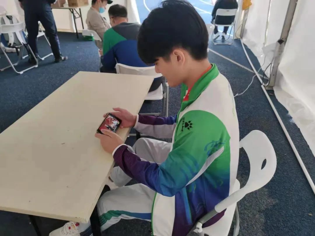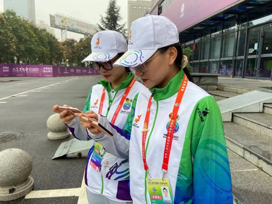 参与十四运会志愿者活动的“小秦宝们”空闲之余也在各自的岗位上观看本次奥运思政大课,奥运健儿们激励着小秦宝们坚守岗位,为十四运会贡献自己的一份力量。
