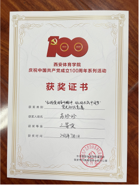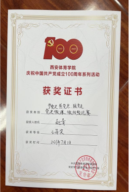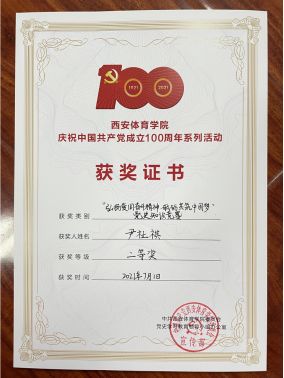 《“弘扬爱国奋斗精神,砥砺共筑中国梦”党史知识竞赛》中学生代表尹祉祺荣获二等奖,教师苏珍珍荣获三等奖,尤勇荣获优秀奖。