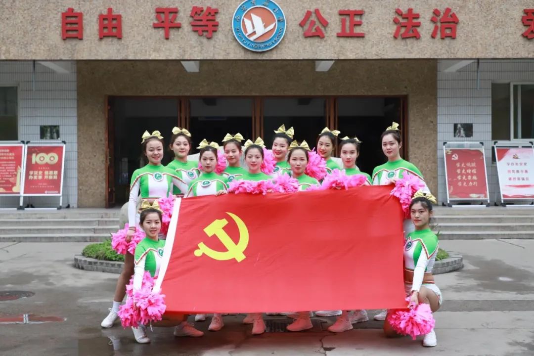 艺术学院啦啦操代表队进行精彩的操舞表演。通过党史宣传进校园系列文化活动,激发广大师生学习党史及爱党爱国热情,从而引导青少年学生树立“知史爱党 知史爱国”的高尚情怀。