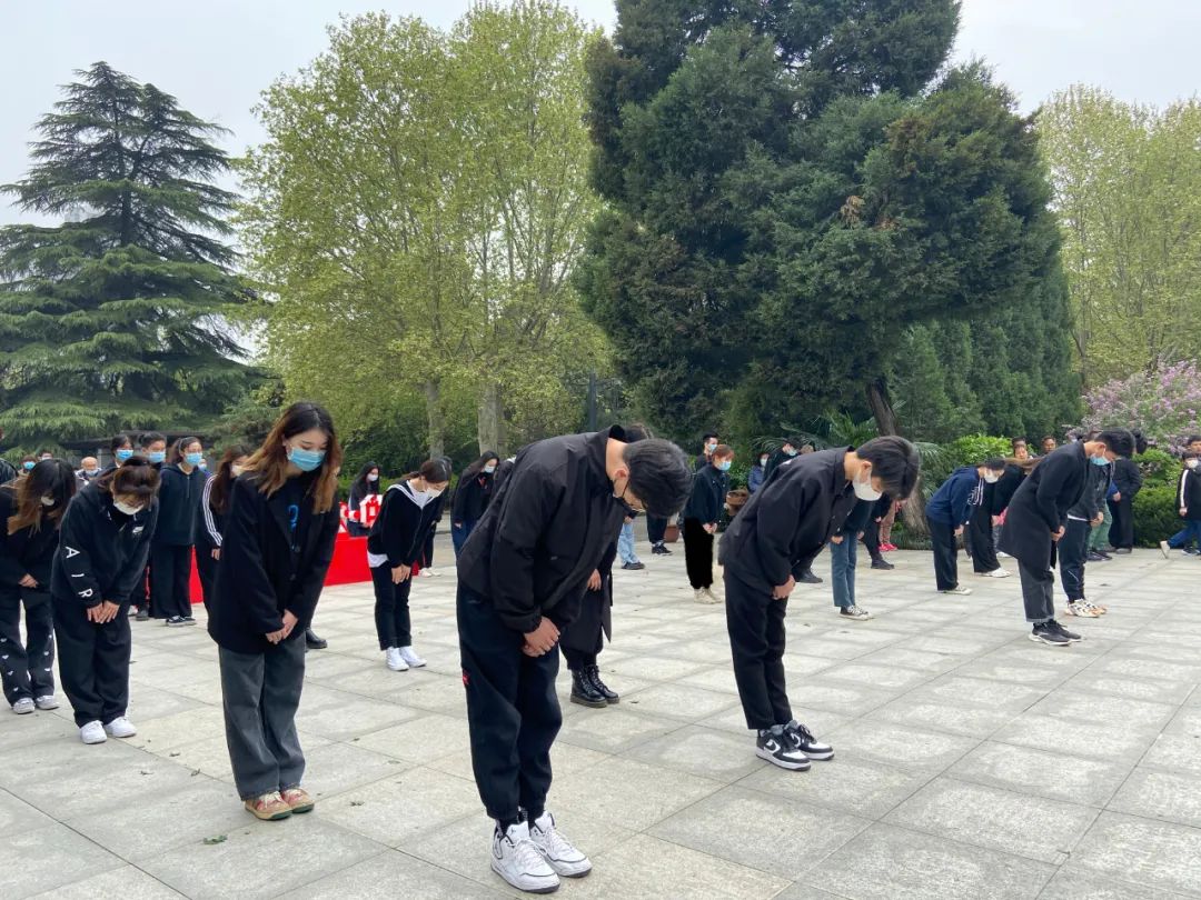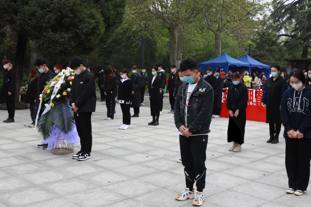 艺术学院学生在烈士墓碑前默哀,以表达对革命先烈最真挚的缅怀之意和敬佩之情,感受从先烈们传递下来的不屈精神与爱国之情。