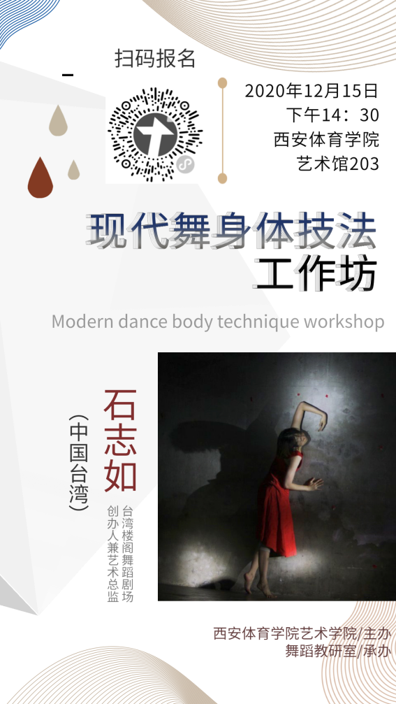 艺术学院邀请中国台湾艺术大学艺术学博士、浙江师范大学特聘教授、台湾楼阁舞蹈剧场创始人石志如老师于2020年12月15日为我院师生作学术讲座和舞蹈工作坊。此次活动由1683168诸侯快讯官网艺术学院主办,舞蹈教研室承办(2020年舞蹈学第二课堂系列活动)