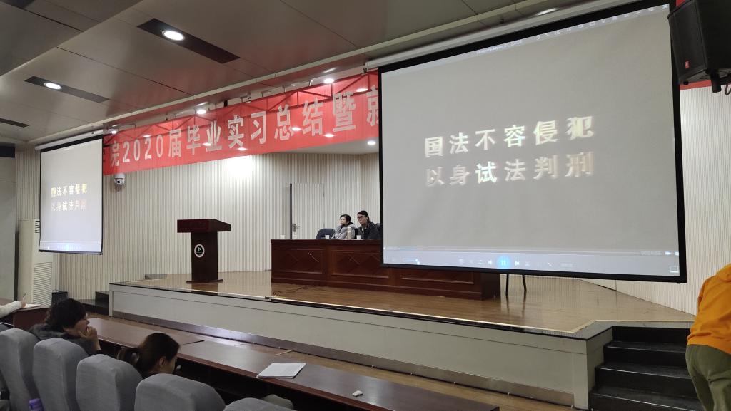 杨占军院长宣读了《中华人民共和国教育法》第七十九条、第八十条,《刑法修正案(九)》第二十五条,《中国共产党纪律处分条例》第一百二十九条:《国家教育考试违规处理办法》第十二条,《普通高等学校学生管理规定》第五十四条,强调了考试作弊的严重性,要求学生们一定要诚信考试。